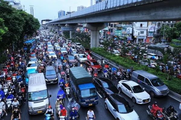 출퇴근 시간 하노이(Hà Nội) 도로는 차량 과밀로 대기오염과 교통체증이 심각해졌다.