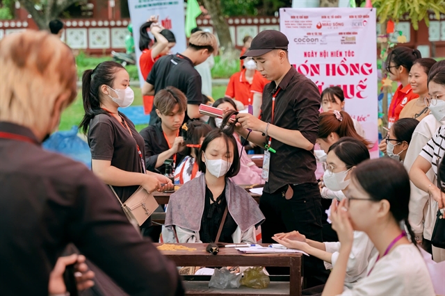 후에에서 '머리카락 기부의 날' 행사가 열려 기증된 머리카락으로 유방암 환자를 위한 가발을 제작한다.