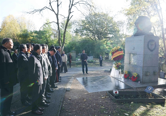 베트남 공산당 총서기 또럼 일행이 영국 런던 하이게이트 공동묘지에서 카를 마르크스 묘소를 참배했다.