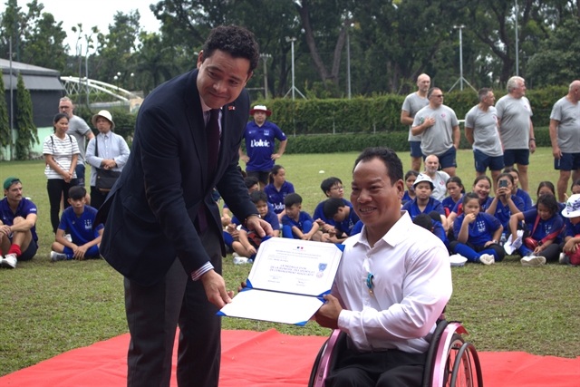 프랑스 주호치민 총영사가 패럴림픽 역도 선수 레 반 콩(Lê Văn Công)에게 프랑스 체육부 금메달을 수여하고 그의 성과와 끈기를 기렸다.