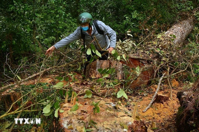 럼동성에서 고대 소나무를 불법으로 벌목한 혐의로 4명이 체포되었다.