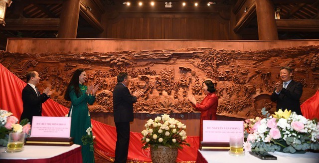 길이 8.33m·너비 1.70m의 희귀 Cẩm나무 대형 목판화가 과거 준비부터 금의환향까지를 생동감 있게 재현해 베트남 기록 2건을 달성했다.