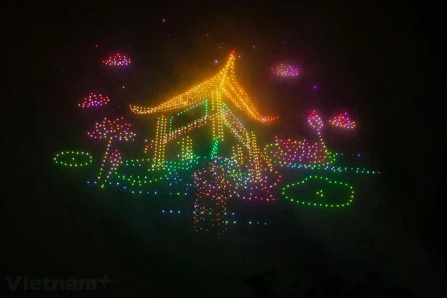 하노이에서 열린 서사적인 예술 프로그램과 드론 레이저맵핑쇼가 관객들을 매료시켰다.