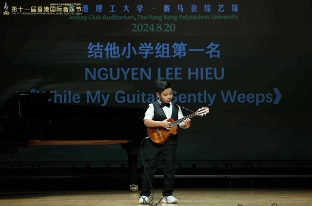 9세의 응우옌 리 히에우가 싱가포르에서 개최된 국제 음악 대회에서 기타-우쿨렐레 부문 1등을 수상했다.