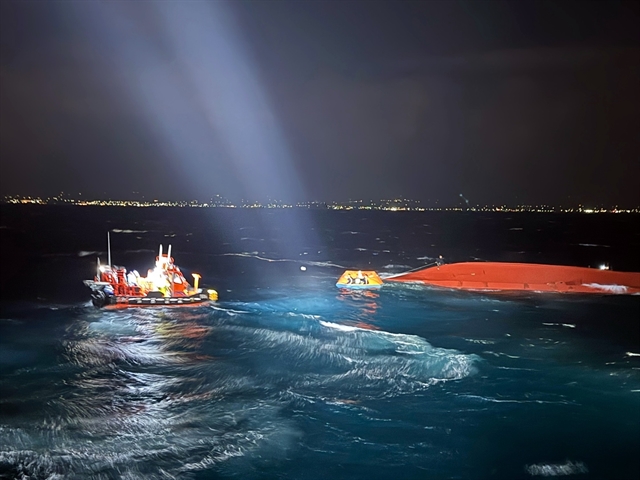 제주도 근처에서 전복된 어선에서 베트남인 3명을 포함한 승무원들이 구조되었다.