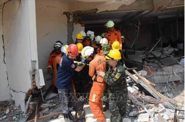 베트남 구조팀이 미얀마에서 5일간 구조 작업을 통해 20여 구의 시신을 수습하고 생존자 1명을 구조했다.