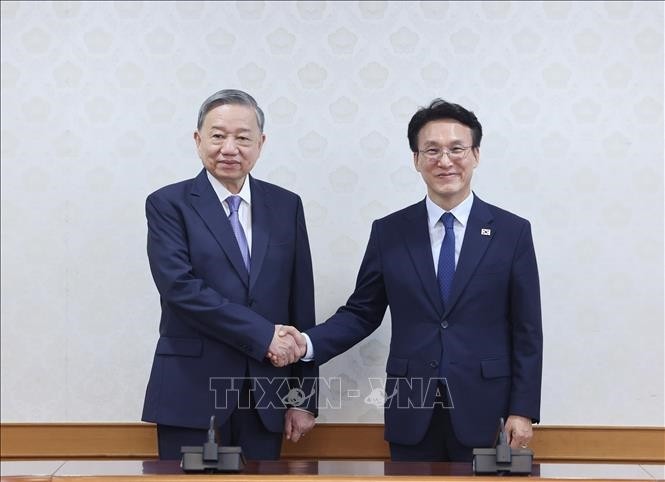 베트남 당 서기장 또럼이 한국 국회의장 우원식과 회담하여 양국 간 협력 강화 방안을 논의했다.