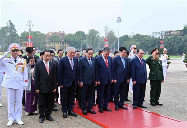 베트남 대표단이 호찌민 주석에게 헌화를 통해 그의 혁명적 공로를 기리며 감사를 표했다.