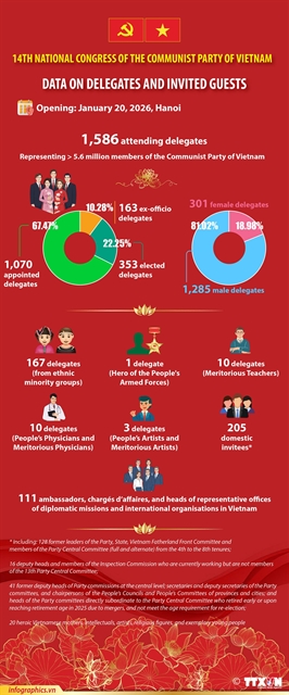 하노이(Hà Nội) 국가회의센터에서 2026년 1월 20일 베트남 공산당(Đảng Cộng sản Việt Nam) 제14차 전국대표대회가 1,586명 대표와 전국 560만여 당원을 대표해 공식 개막했다.