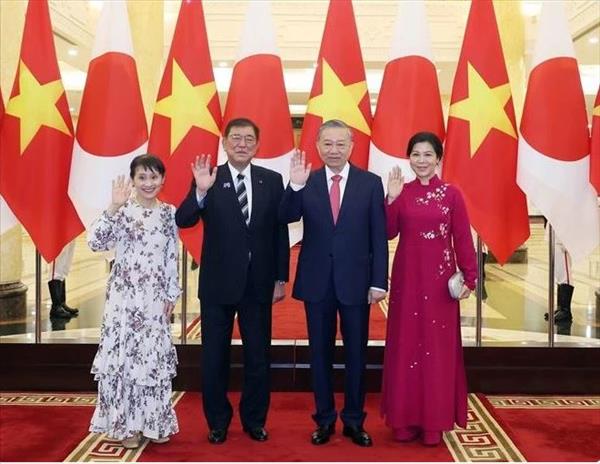일본의 이시바 시게루 총리와 부인이 베트남을 공식 방문하여 하노이에 도착했다.