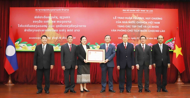 베트남 대사는 라오스 대통령실에 양국의 특별한 우정과 협력을 인정하여 독립훈장과 우정훈장을 수여했다.