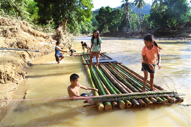 응에안성에서 폭우로 하천이 급속히 불어나 철교가 떠내려가며 30여 가구가 고립되고 주민들이 대나무 뗏목으로 위험을 무릅쓰고 이동하고 있다.