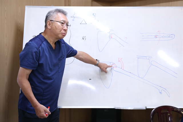 JICA의 ODA로 일본 전문가들이 호찌민의 의료진에게 기계에 의존하지 않는 유도 요법을 이론과 실습으로 교육하고 있다.