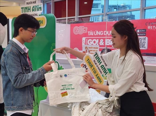 10월 18~19일 ‘고! 후에’ 방문 고객은 봉투당 1만 동 보증금으로 재활용 쇼핑백을 대여하고 반납 시 전액 환불받을 수 있으며, 가방은 폐배너를 재활용해 장애인 학교 학생들이 제작했다.