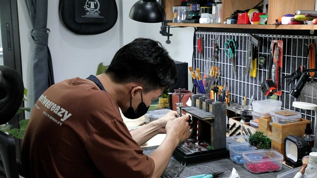 응우옌 반 꾸엉(Nguyễn Văn Cường)은 도구와 재료로 가득한 작은 방에서 하노이의 길모퉁이와 처마, 낡은 전신주를 작은 조각품으로 만들어 지역의 시간과 풍경을 담아낸다.