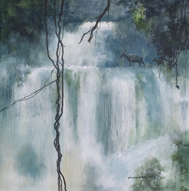 Đào Văn Hoàng의 첫 개인 전시회에서 야생동물과 자연을 그린 160여 점의 작품이 전시 중이다.