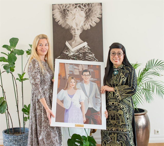 팜민찐(Phạm Minh Chính) 총리의 배우자, 에스토니아에서 문화 교류하며 특별한 선물 전달.